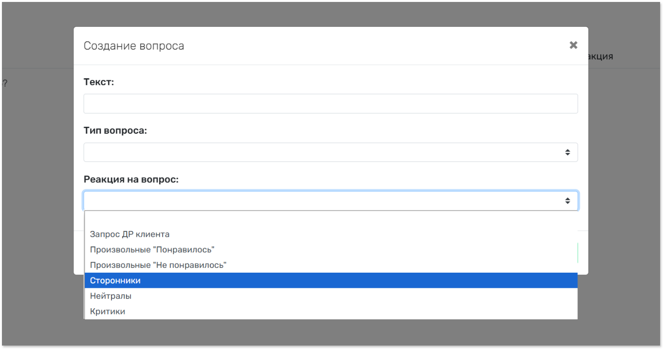 - Реакция на вопрос – выбрать реакцию из предложенного списка.