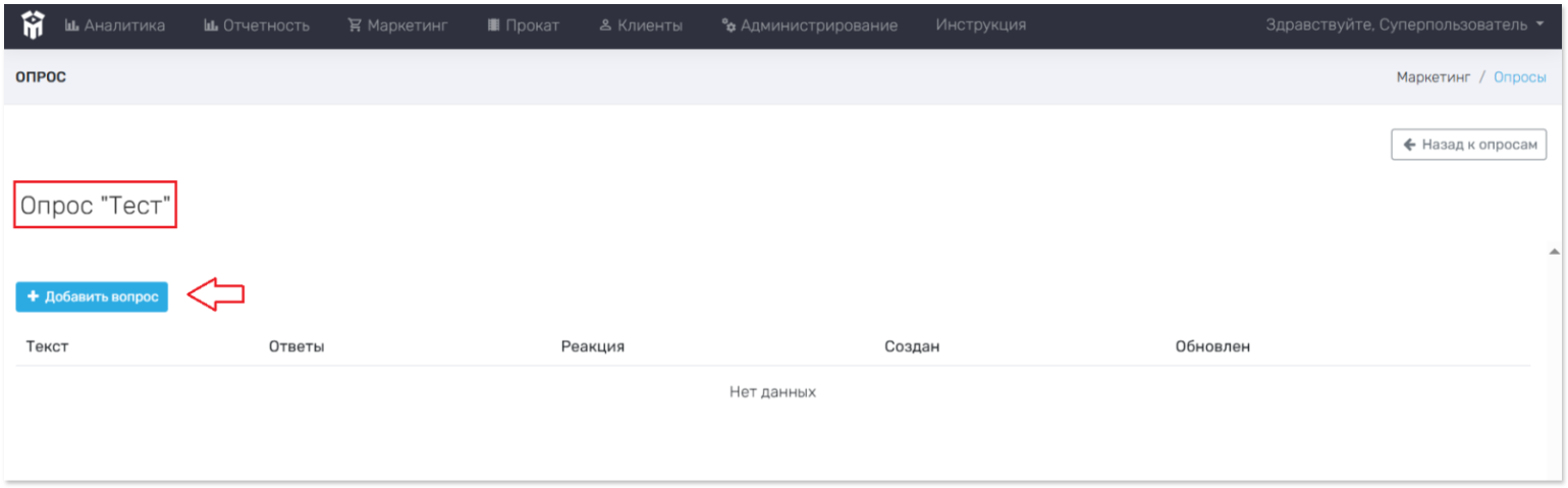 Для добавления нового опроса необходимо левой кнопкой мыши нажать на строчку «Добавить опрос».