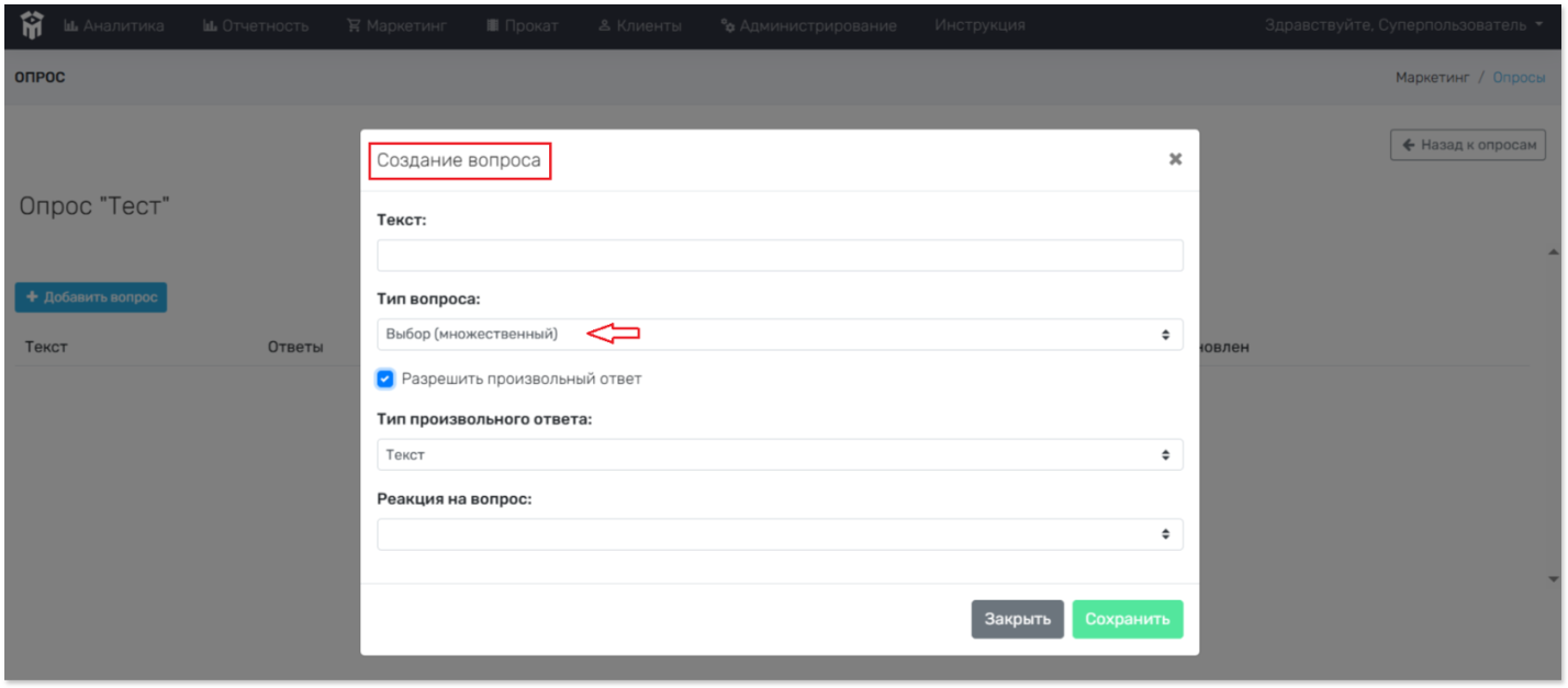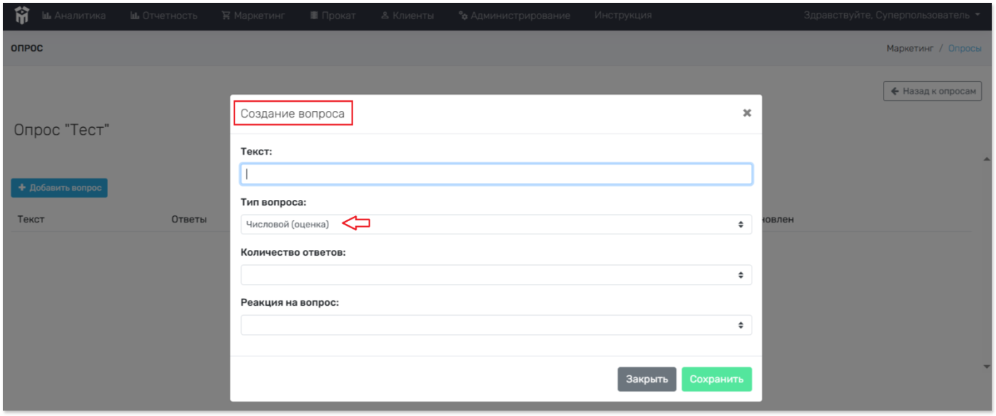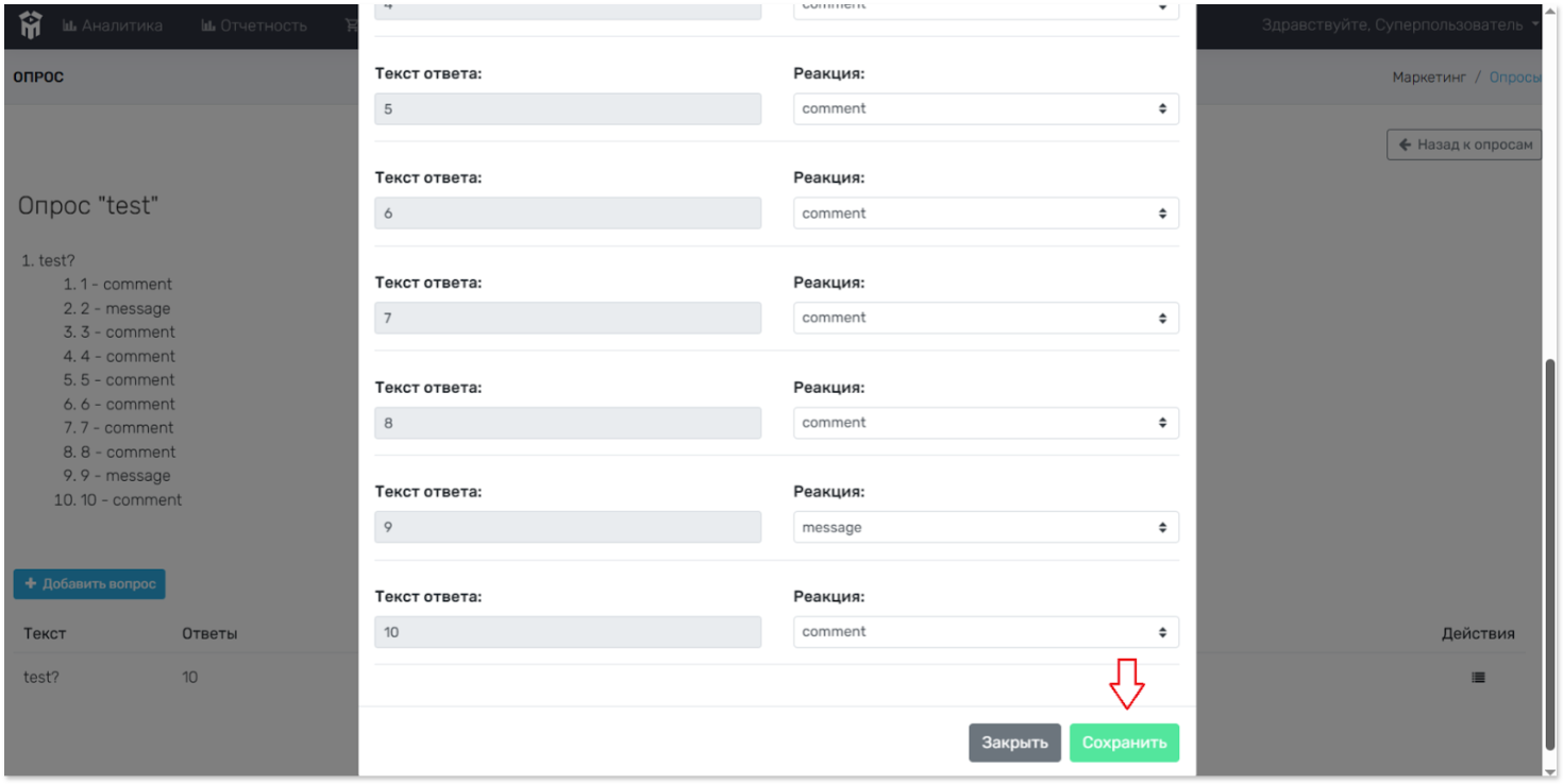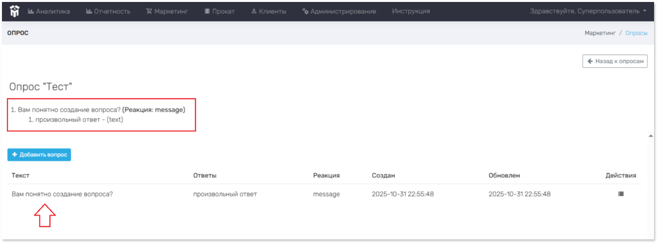 Для сохранения вопроса необходимо нажать на кнопку «Сохранить». Вопрос автоматически отобразится в выбранном опросе.